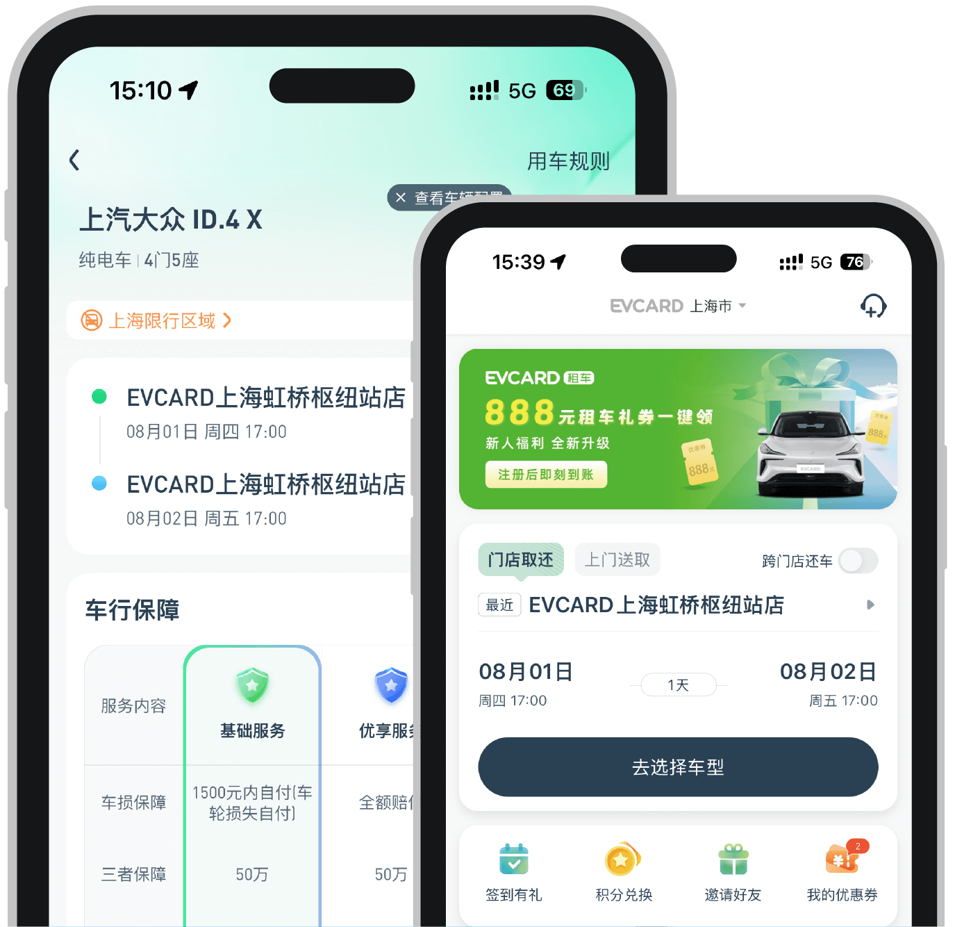小程序:可通過微信、支付寶平臺搜索“EVCARD租車”小程序進行預(yù)定。